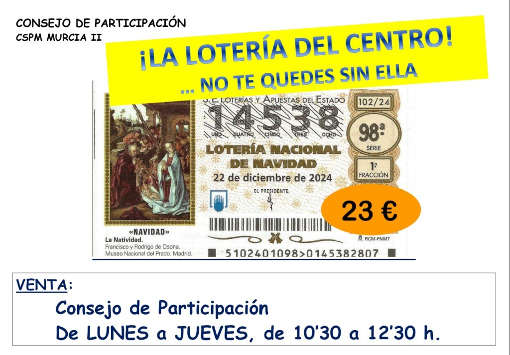 Desde el Consejo de Participación nos hacen llegar que ya se puede adquirir Decimos de la Lotería de Navidad.