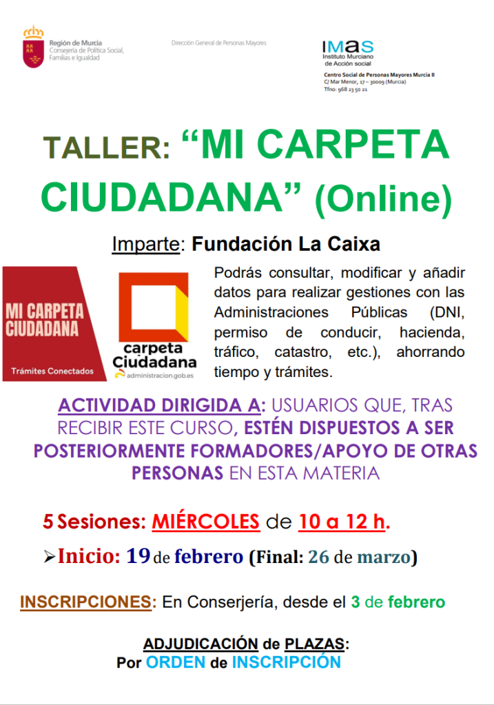 A continuación se pueden consultar los carteles de 3 nuevos talleres, que imparte Fundación La Caixa y que irán comenzando en febrero, con inscripción en Conserjería del centro, desde finales de enero los días 27 y 29.