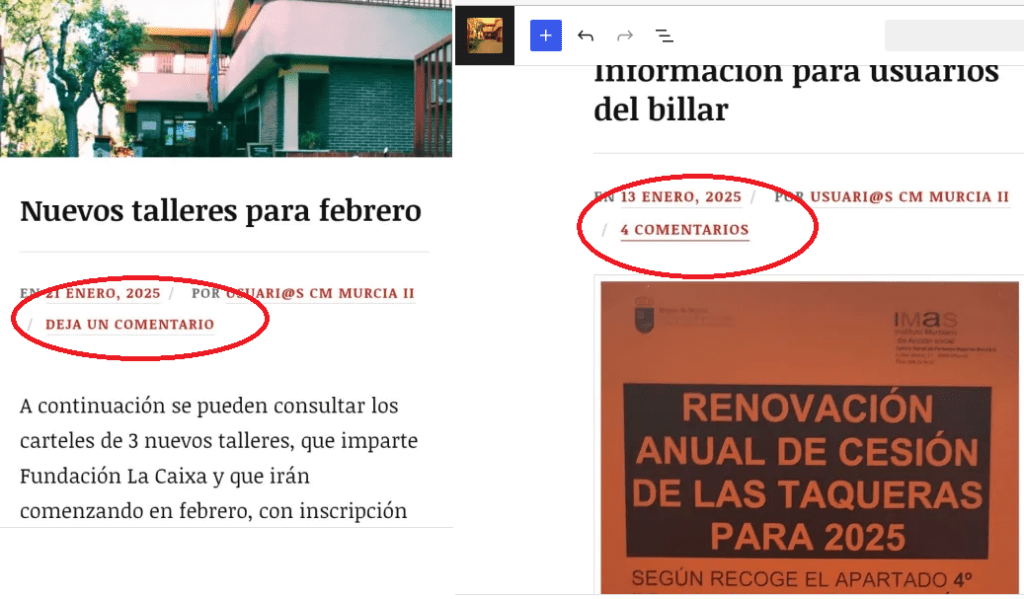REALIZAR O VER COMENTARIOS EN CADA ENTRADA PINCHANDO SOBRE ELLOS