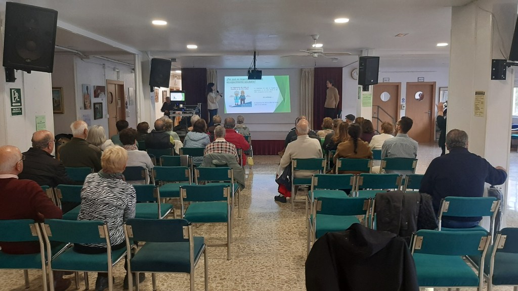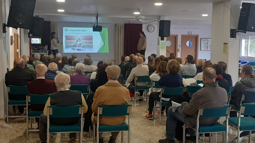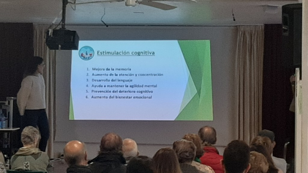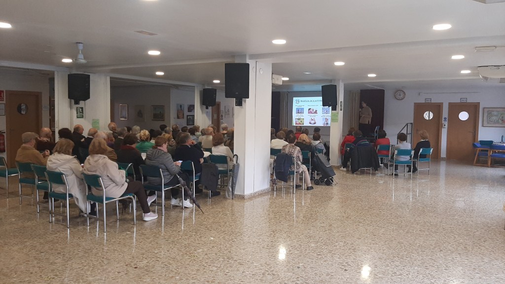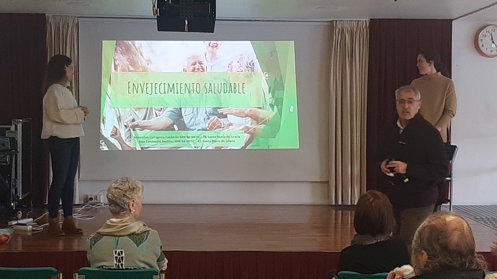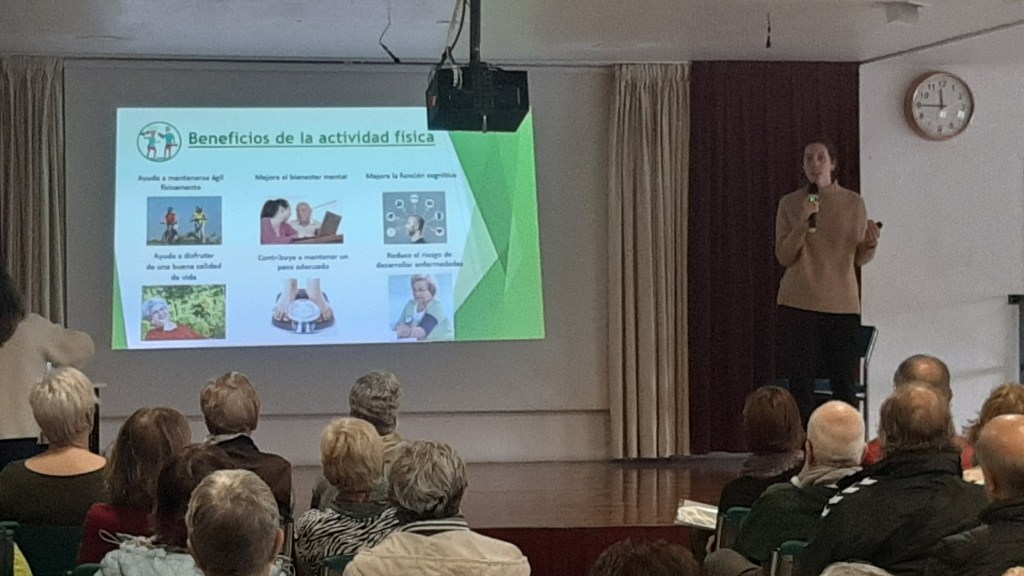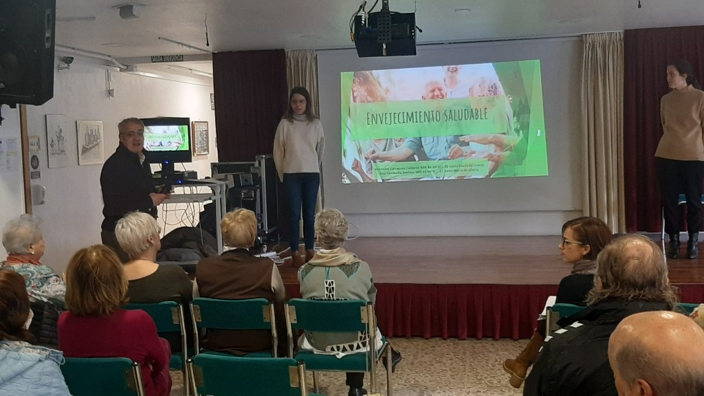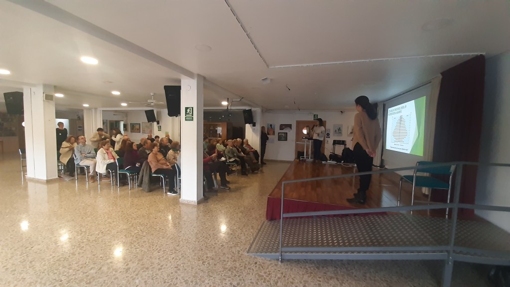 Por su parte Ana y Mercedes centraron la charla en que significa el envejecimiento saludable, que factores influyen en el mismo, hablando de Factores Genéticos, Ambientales y Estilos de Vida, comentando que se necesita para envejecer de manera saludable, hablando de Alimentación, Ejercicio Físico, Bienestar Emocional, Ocio y Estimulación Cognitiva , desarrollando cada uno de estos hábitos y los beneficios de cada uno de ellos para encontrarse mejor.