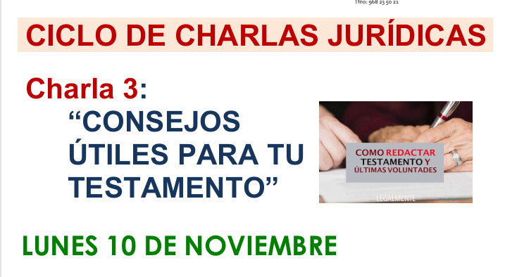 El 3 de noviembre, tuvo lugar en el centro, la segunda charla del ciclo, «Charlas Jurídicas» impartida por la Catedrática de Derecho Financiero de la UMU, Mª del Mar De la Peña Amorós.