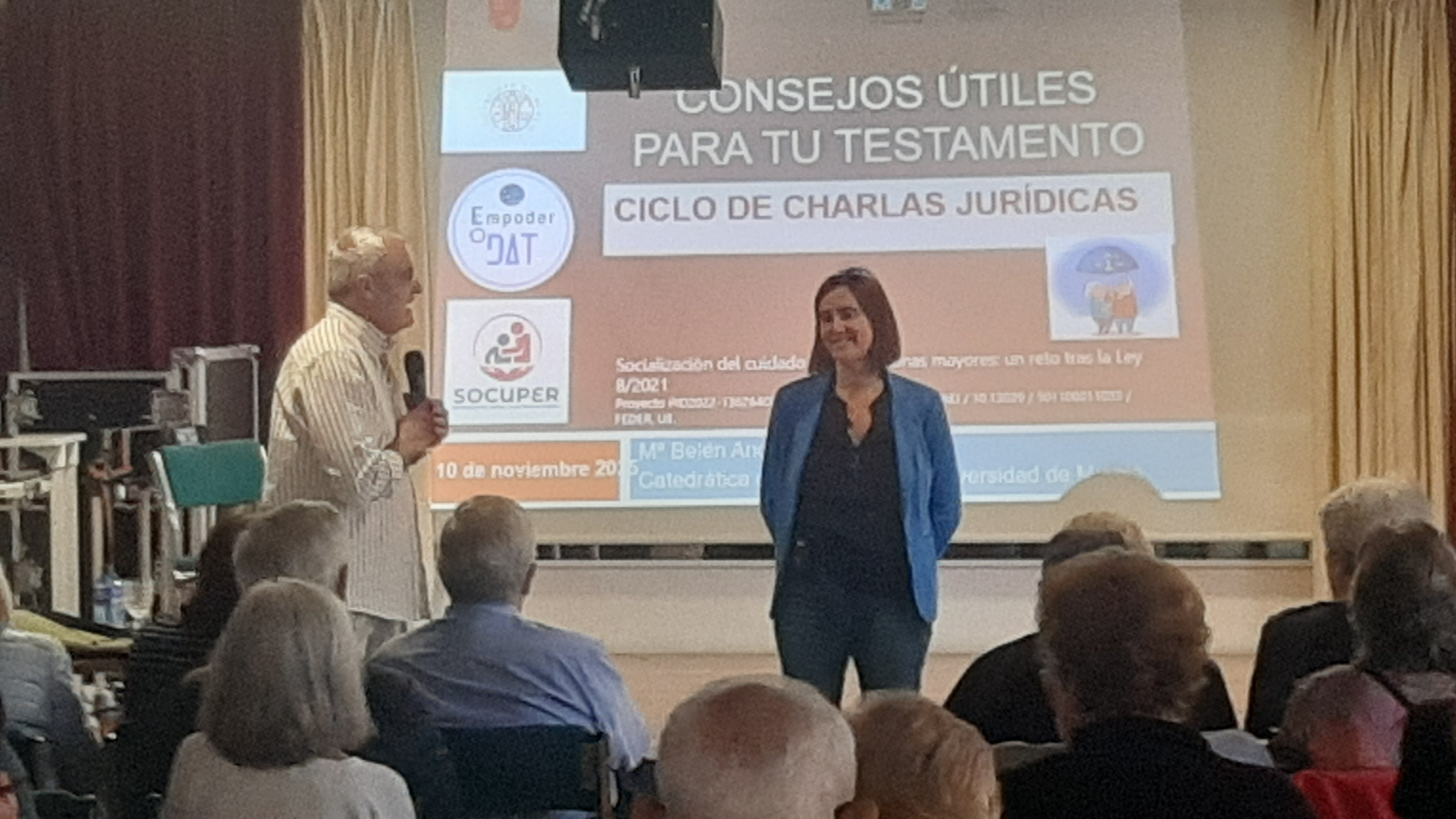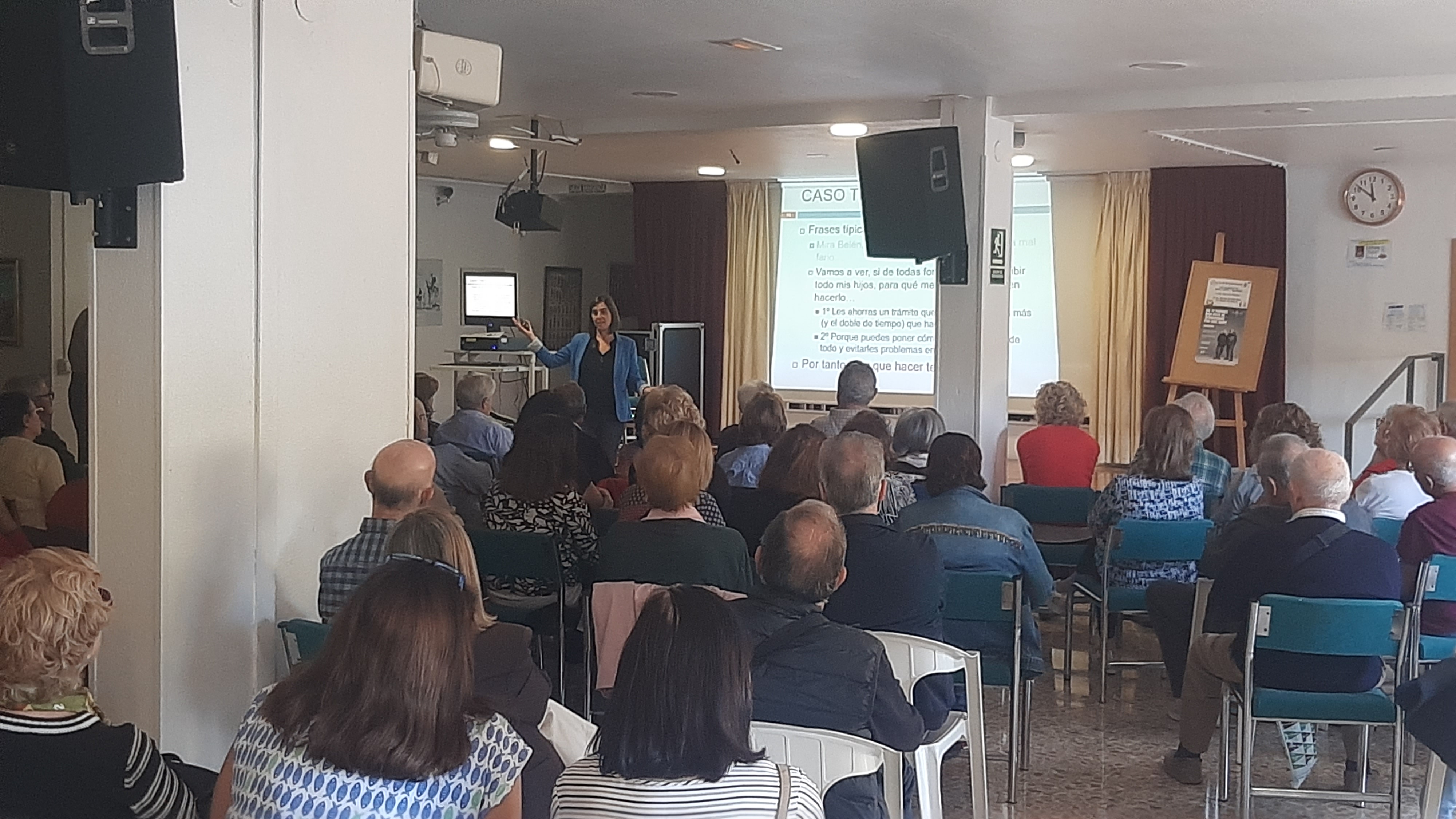 La exposición la fue realizando a través de casos y en cada uno daba los consejos que se deducían de cada caso, de cómo ahorra un montón de problema si se hace, del orden de cómo se reparte la herencia, si no se especifica en el testamento el reparto de los bienes que uno tiene y aconseja que se especifique que bien hereda cada heredero.