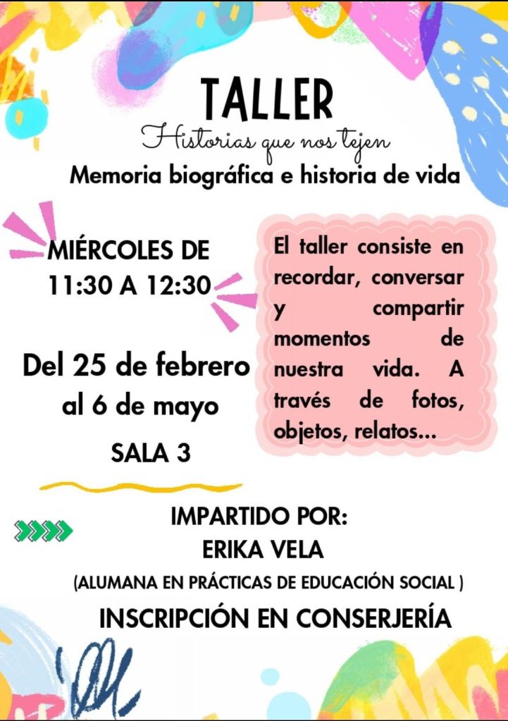 Nuevos talleres con próxima inscripción Todos los lunes y miércoles a las 11,30 horas cada semana de Febrero a Mayo. Comparte:Me gusta Cargando...