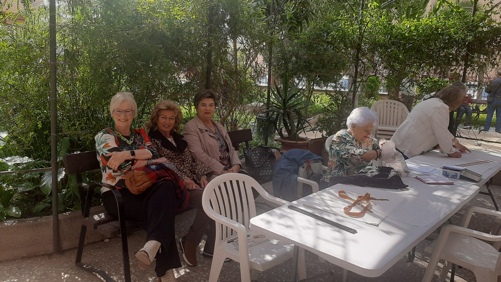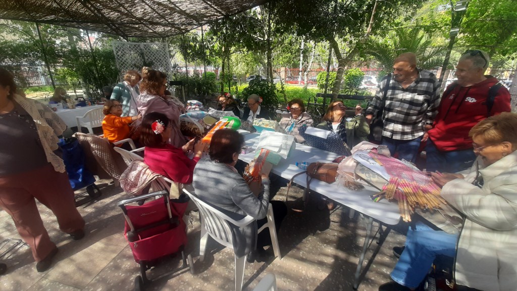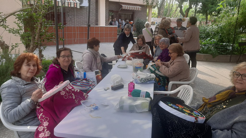 El pasado miércoles 2 de Abril y siguiendo con la Programación del Centro: “Primavera con Arte”, se realizo una exposición al aire libre de los Talleres: Bolillos, Bordados, Manualidades, Patronaje y Pintura.