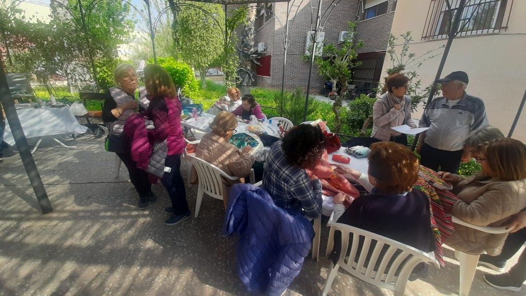 En la Pérgola exterior se instalaron dichos talleres para enseñar a los demás usuarios del Centro los trabajos que están realizando en los mismos, los usuarios podían pasar de mesa en mesa viendo cada taller.